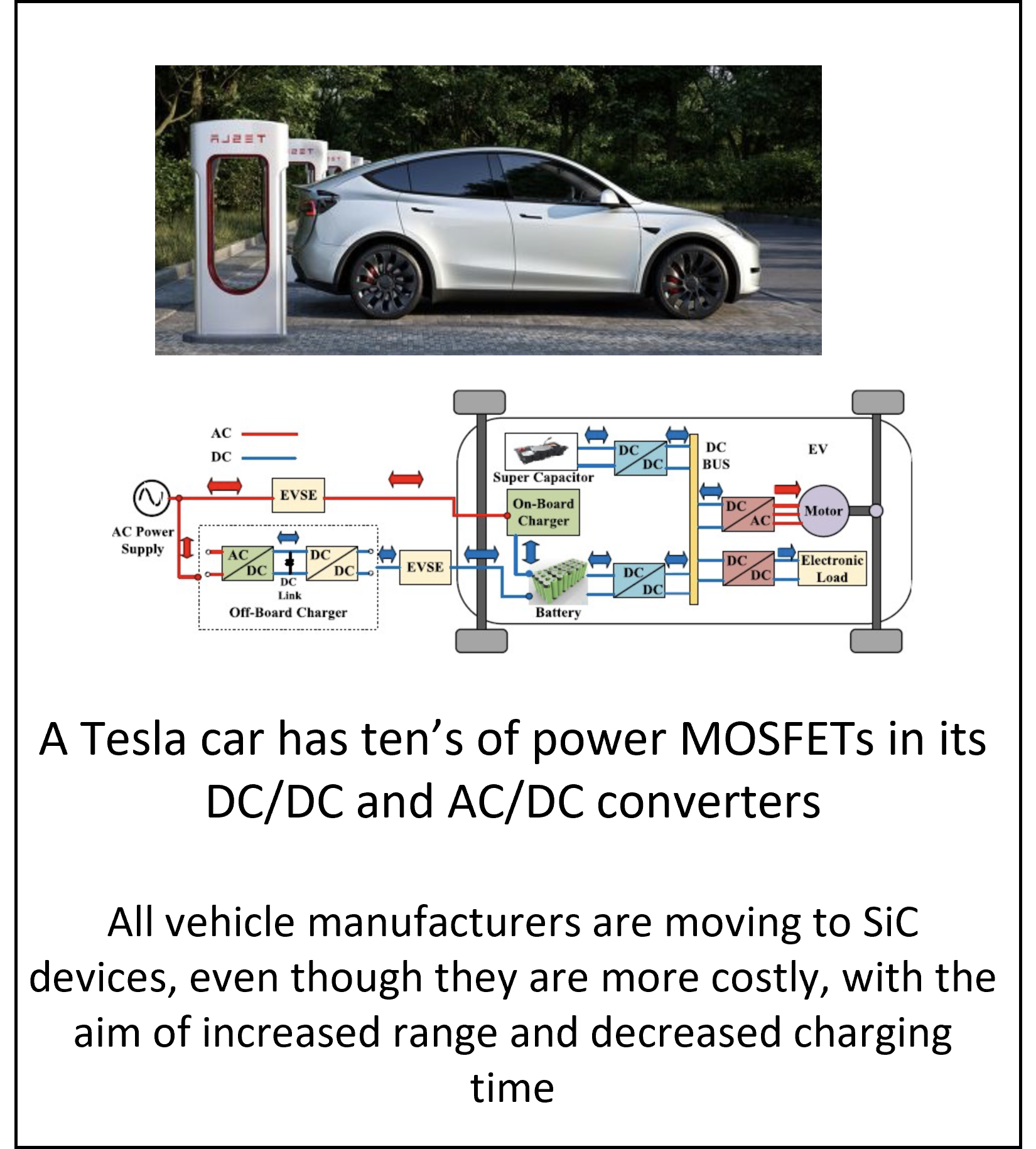 Synchronisation of the electricity grid, and control of high electrical power in EVs, data centres, power traction, inverters and electric motors all require electrical switches called power MOSFETs
